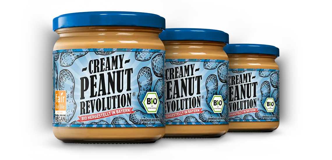 Revolutionär? Oh ja! Peanut-Revolution ist nicht einfach eine weitere Peanutbutter im Regal, sondern ist: Bio, Fair und hergestellt in Bayern.