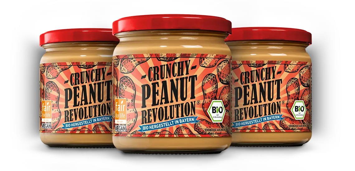 Revolutionär? Oh ja! Peanut-Revolution ist nicht einfach eine weitere Peanutbutter im Regal, sondern ist: Bio, Fair und hergestellt in Bayern.