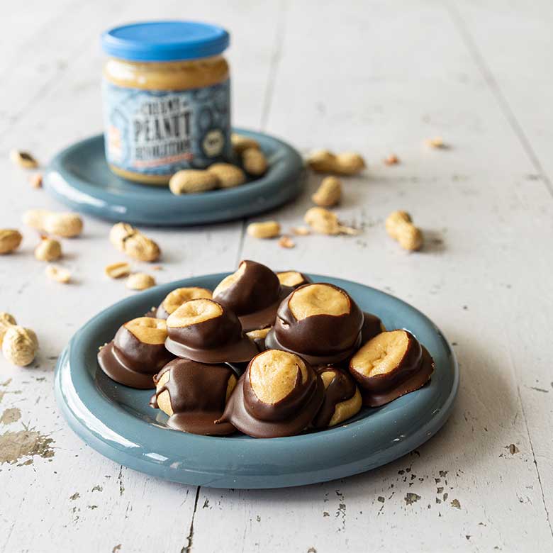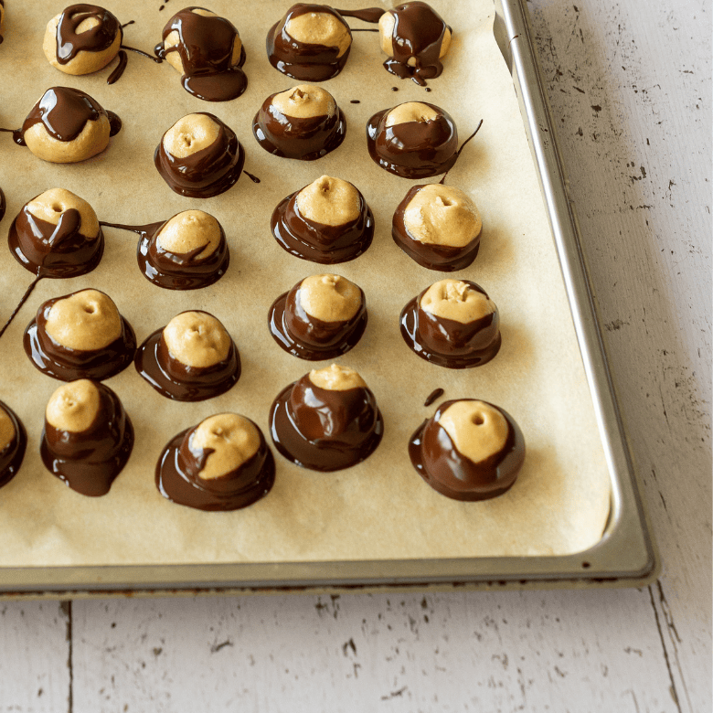Die fertigen Buckeyes Kekse mit einem heißen Getränk genießen.